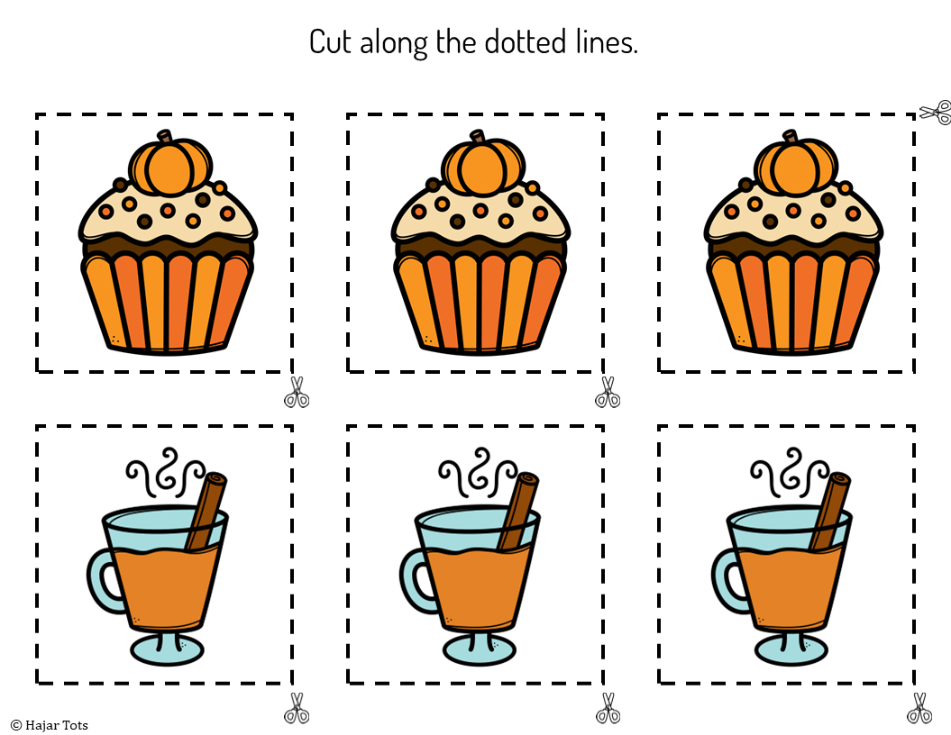 This seemingly simple exercise is a big win for little learners. By focusing on cutting out the squares without damaging the adorable cupcakes or the warm apple cider, they're building those essential scissor skills while having fun! It's a confidence booster that paves the way for more intricate cutting challenges later on.
